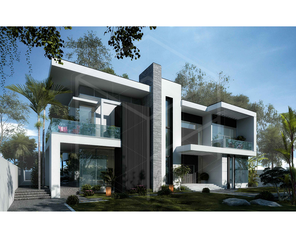 A prestigious private villa project. The awarded scope included glass and aluminum works, fixed curtain walls, sliding doors, fixed decorative louvers and pivot doors.