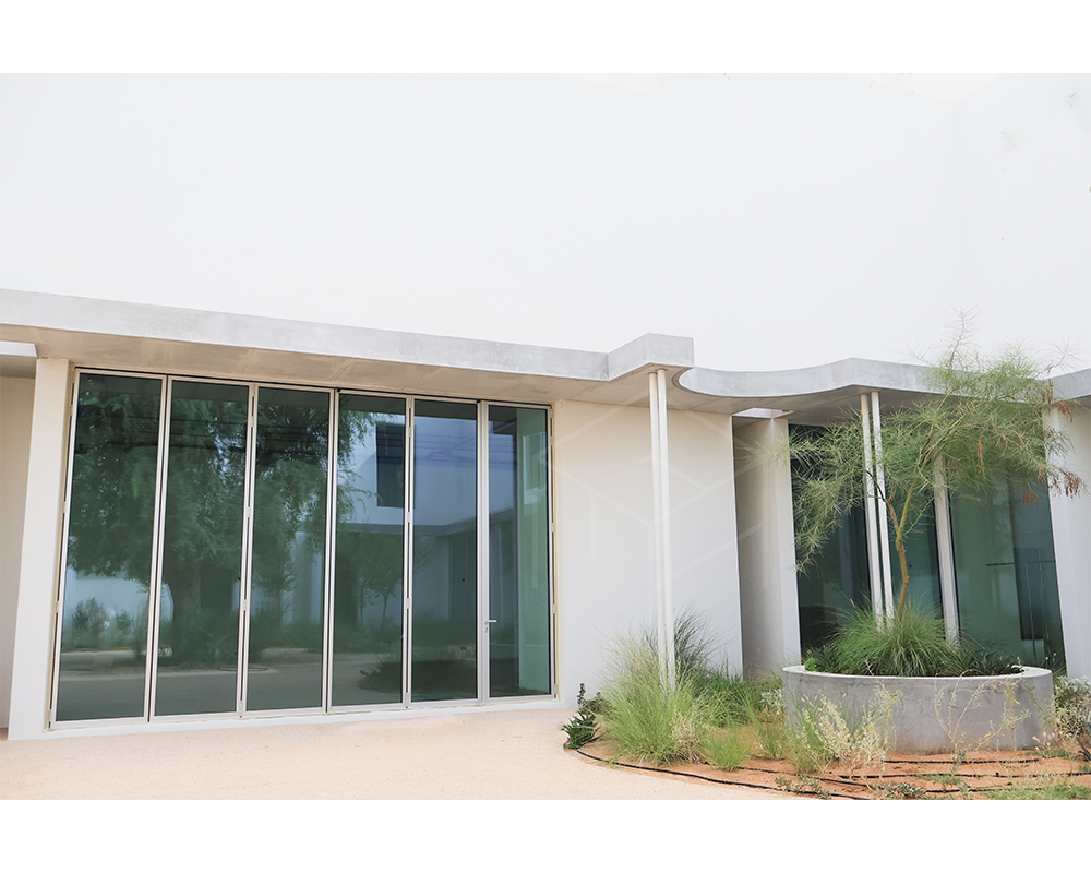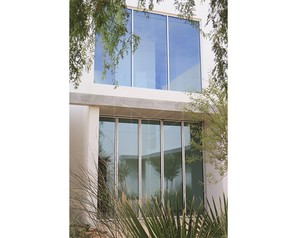 A prestigious commercial G+1commercial building consists of restaurant, paddle court, gym, spa project. The awarded scope included glass and aluminum works, fixed curtain walls, folding doors, skylight and frameless glass.